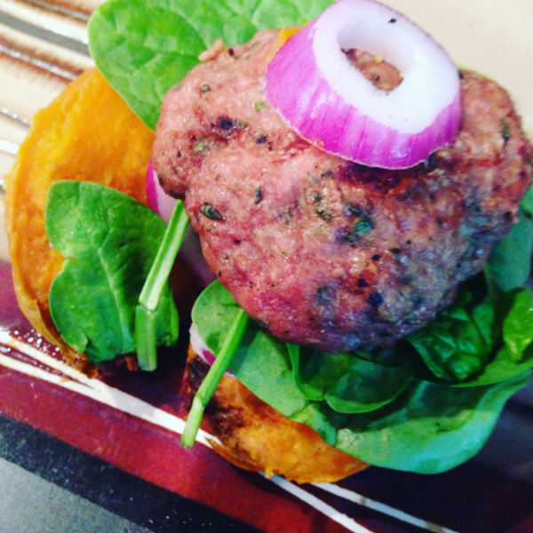 I love wrapping my burger in a huge amount of butter, romaine, or iceberg lettuce.  Top with red onion, avocado, and spinach.  Now, for a double treat try skipping the lettuce and baking a sweet potato (try taking it out just before it get's too soft).  Let it cool and slice in half.  Layer with spinach, red onion, and jalapeno peppers.